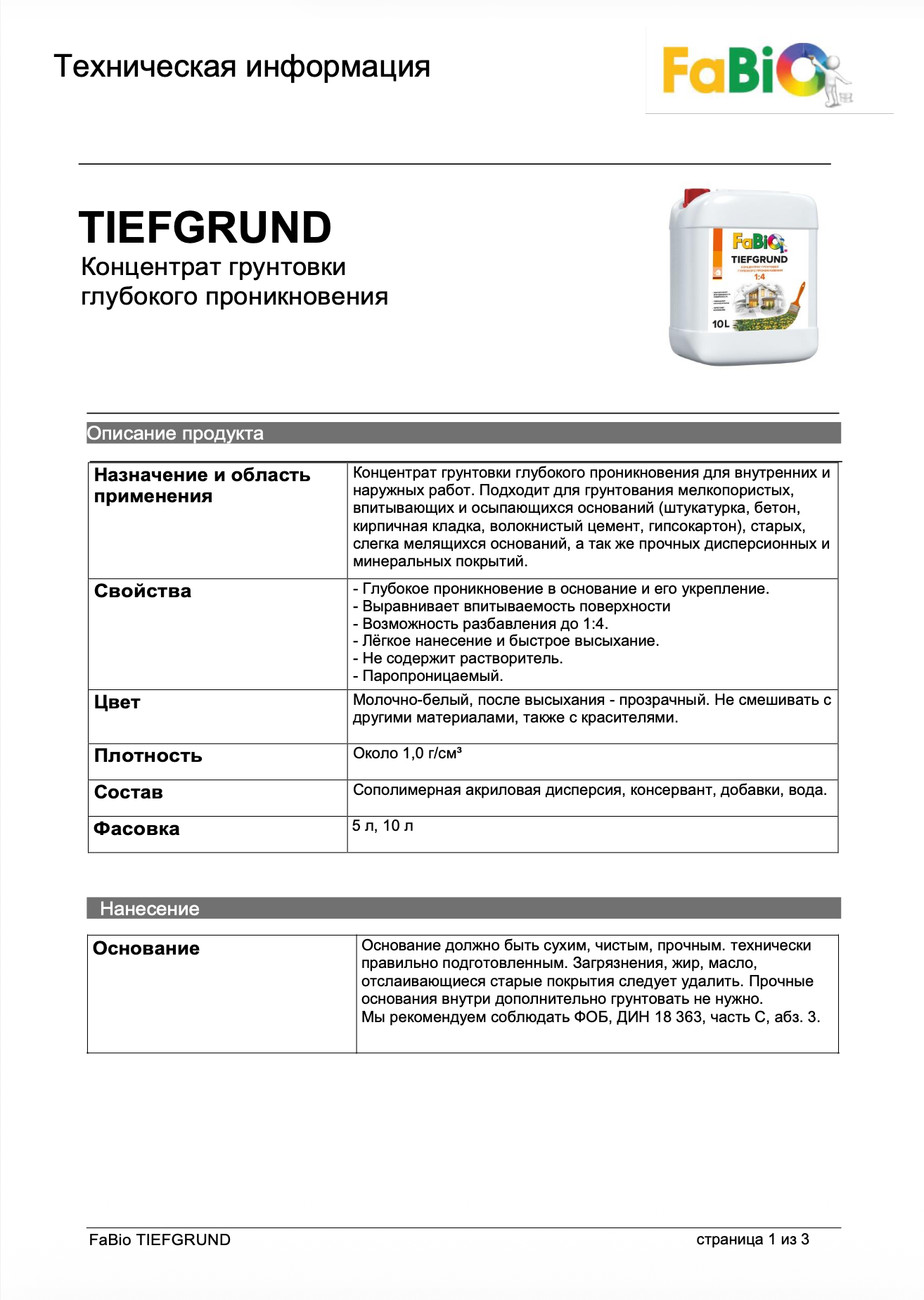 Грунтовка концентрат 1:4 FaBio Tiefgrund